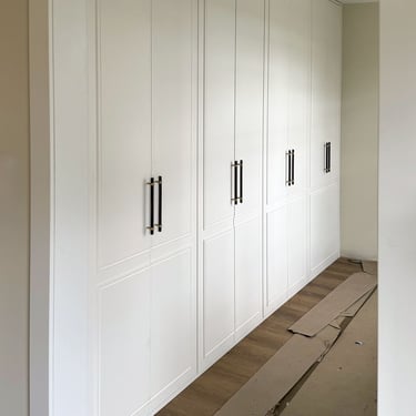 For this project, we designed and built a custom-made wardrobe that perfectly blends functionality with style. Equipped with Blum drawers for effortless movement, a Häfele lift system for smart accessibility, and discreet integrated LED lighting, the wardrobe not only provides generous storage but also adds a touch of luxury to the interior. This tailored solution shows how premium details can transform everyday storage into a statement feature of the home.