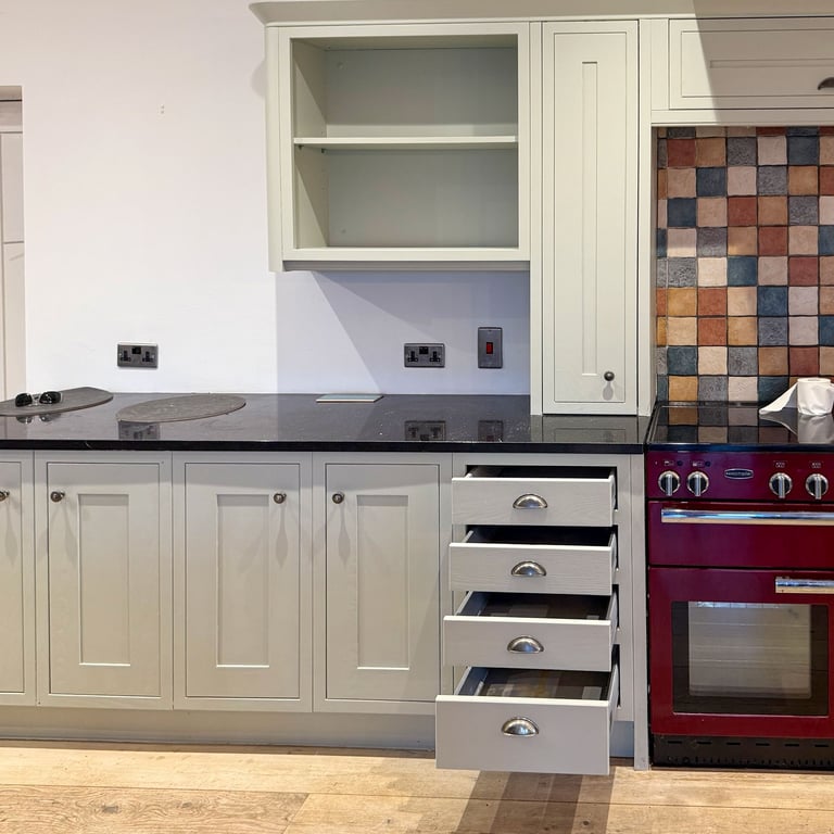 Instead of replacing the entire kitchen, our client chose a smarter and more sustainable option – repainting. We carefully removed all doors, drawers, hinges, and handles, cleaned them thoroughly, and applied a smooth light olive finish. Once reinstalled, the kitchen looked stylish, modern, and refreshed, proving that a simple colour change can completely transform the heart of the home.