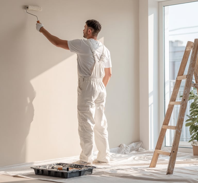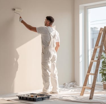 Fixed Price Examples: Small room from £250, Medium room from £350, Ceiling painting from £150, Wallpapering (get a quote).