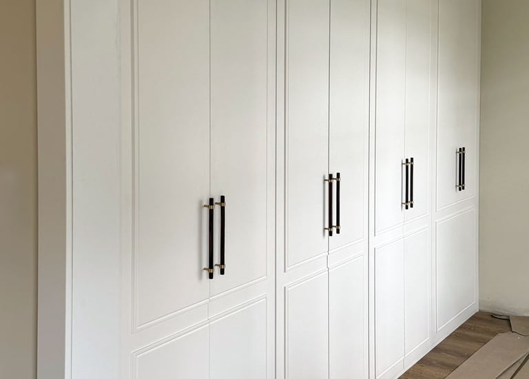 We created a bespoke fitted wardrobe with premium fittings and modern LED lighting.